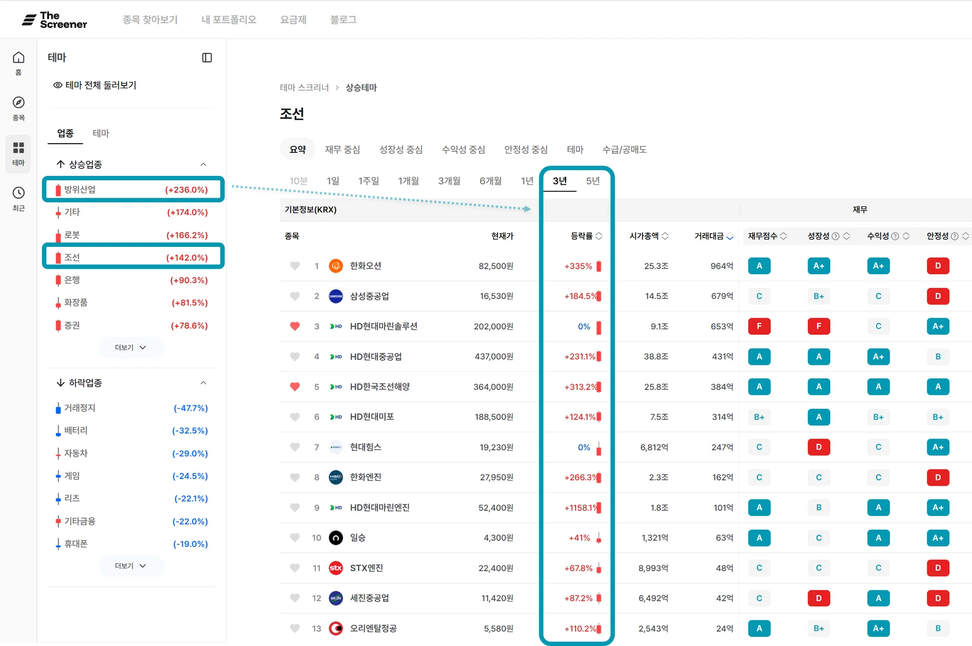 “조선”업종과 “방산”업종은
