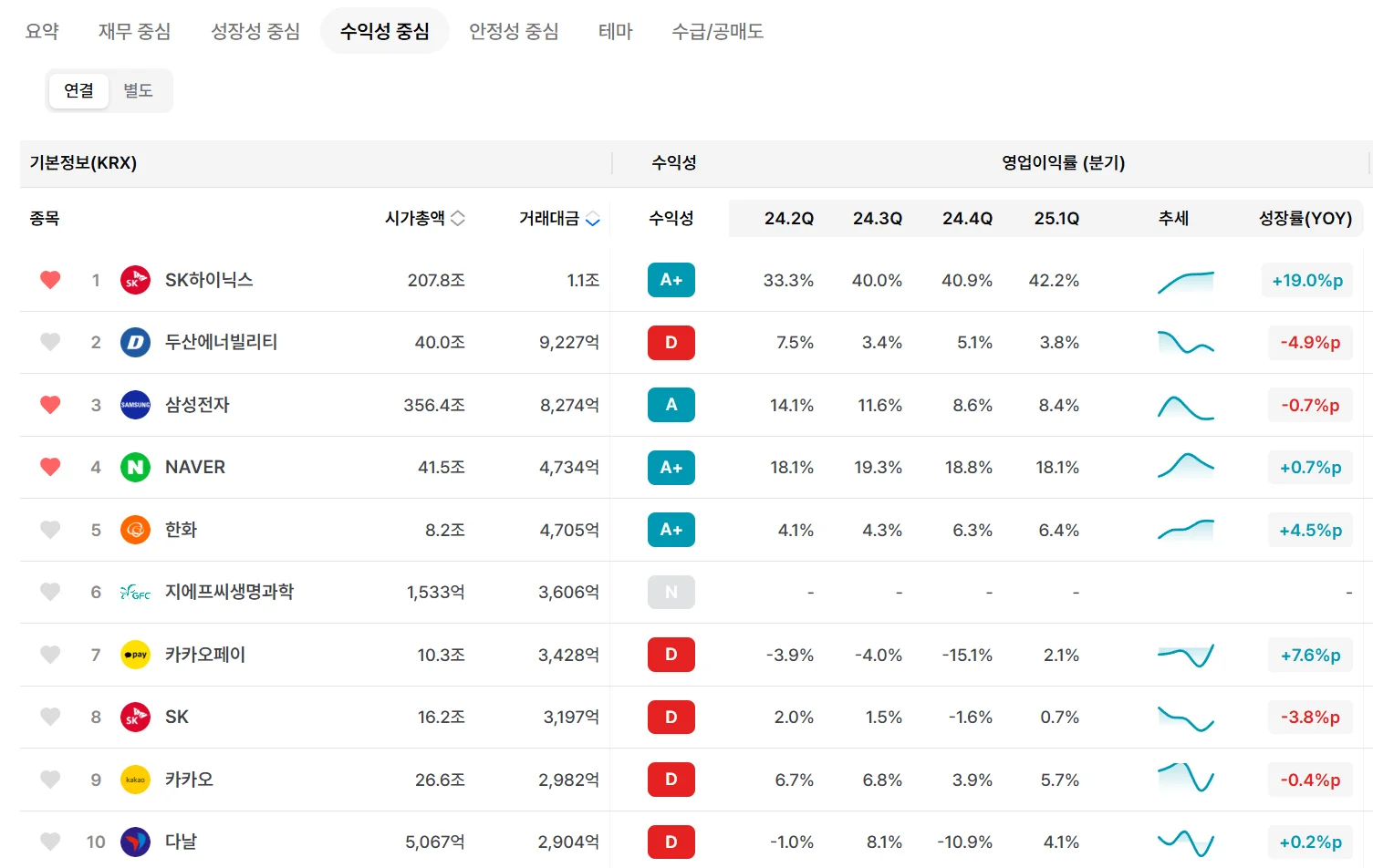 ‘수익성 중심’ TAB을 클릭하면