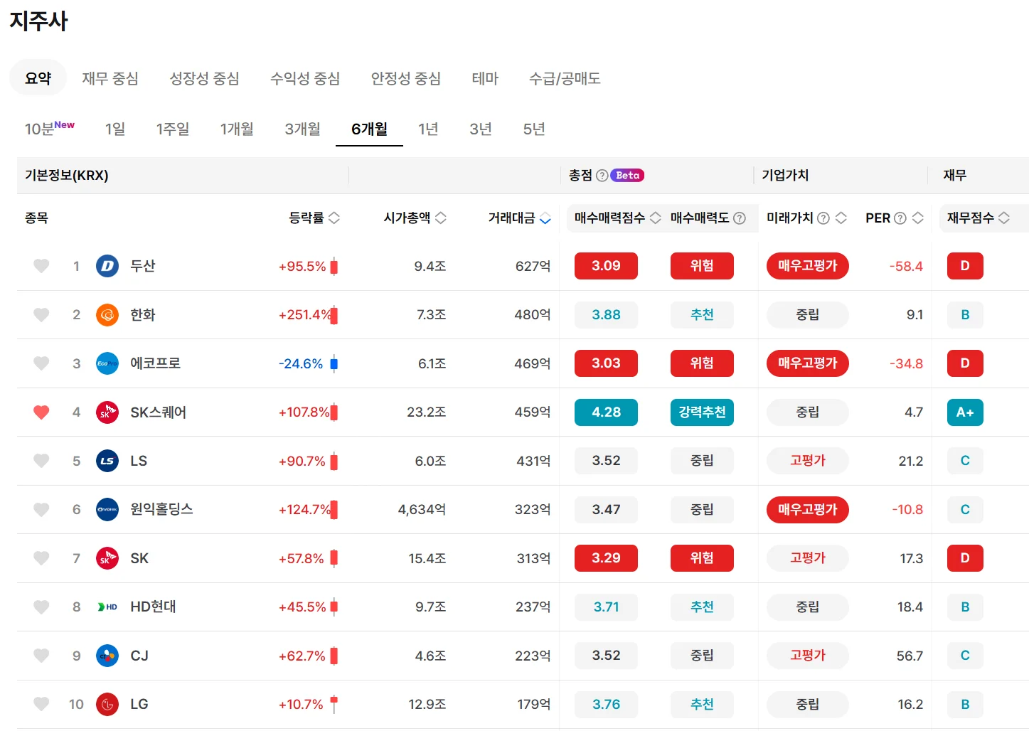 [내 포트폴리오] 재무 A+ 기업의 6개월 주가 상승률