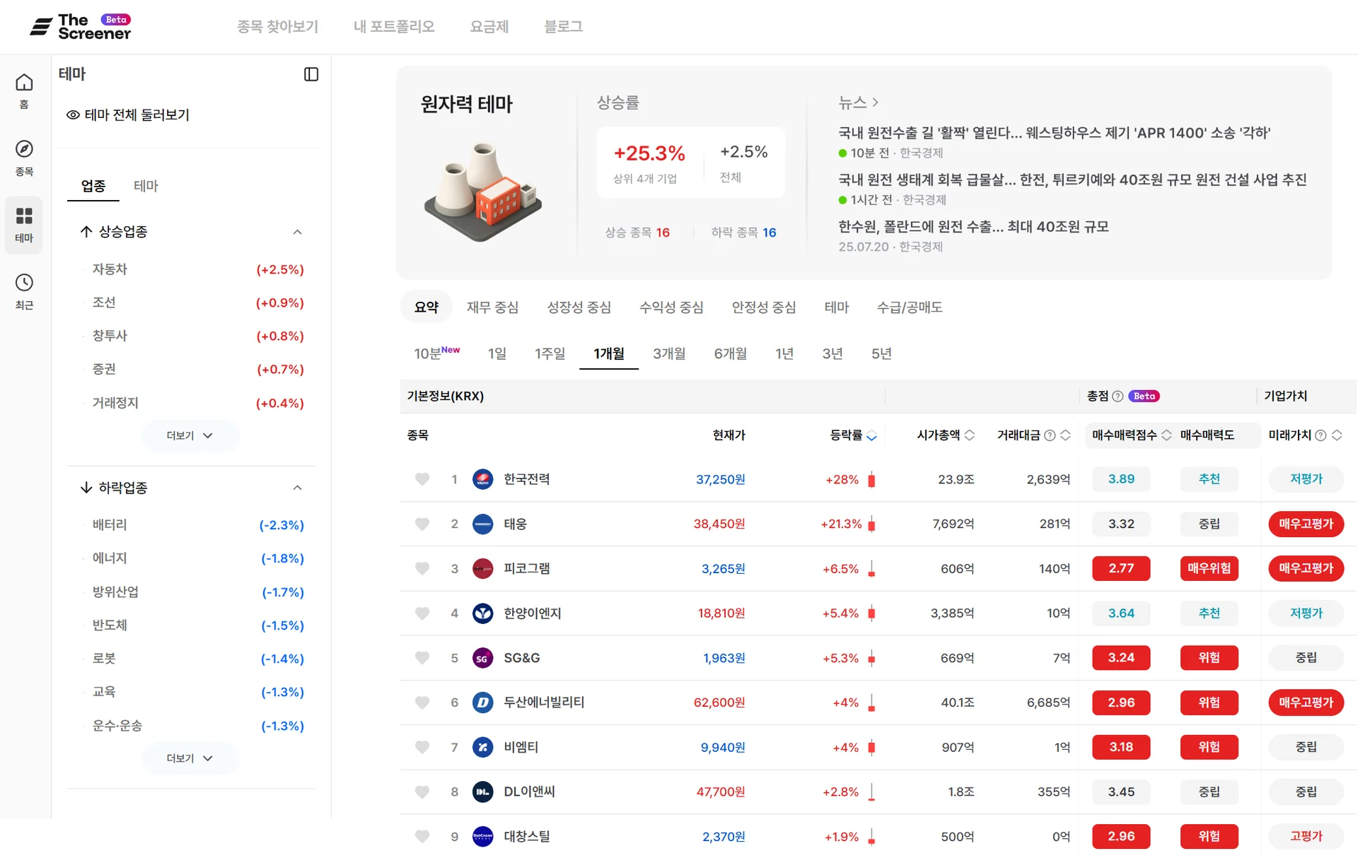 이를 통해 → 뜨는 업종/테마, 저평가된 업종/테마를 빠르게 발굴 할 수 있습니다.